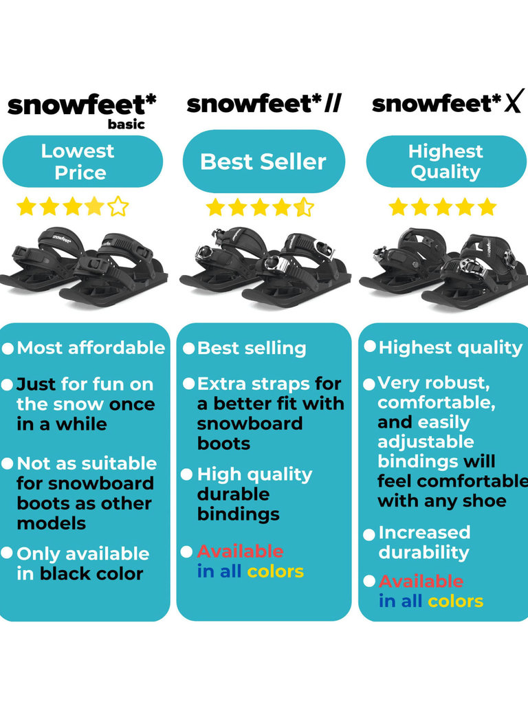 To help you stay safe, we don’t recommend using Snowfeet on extremely steep slopes.