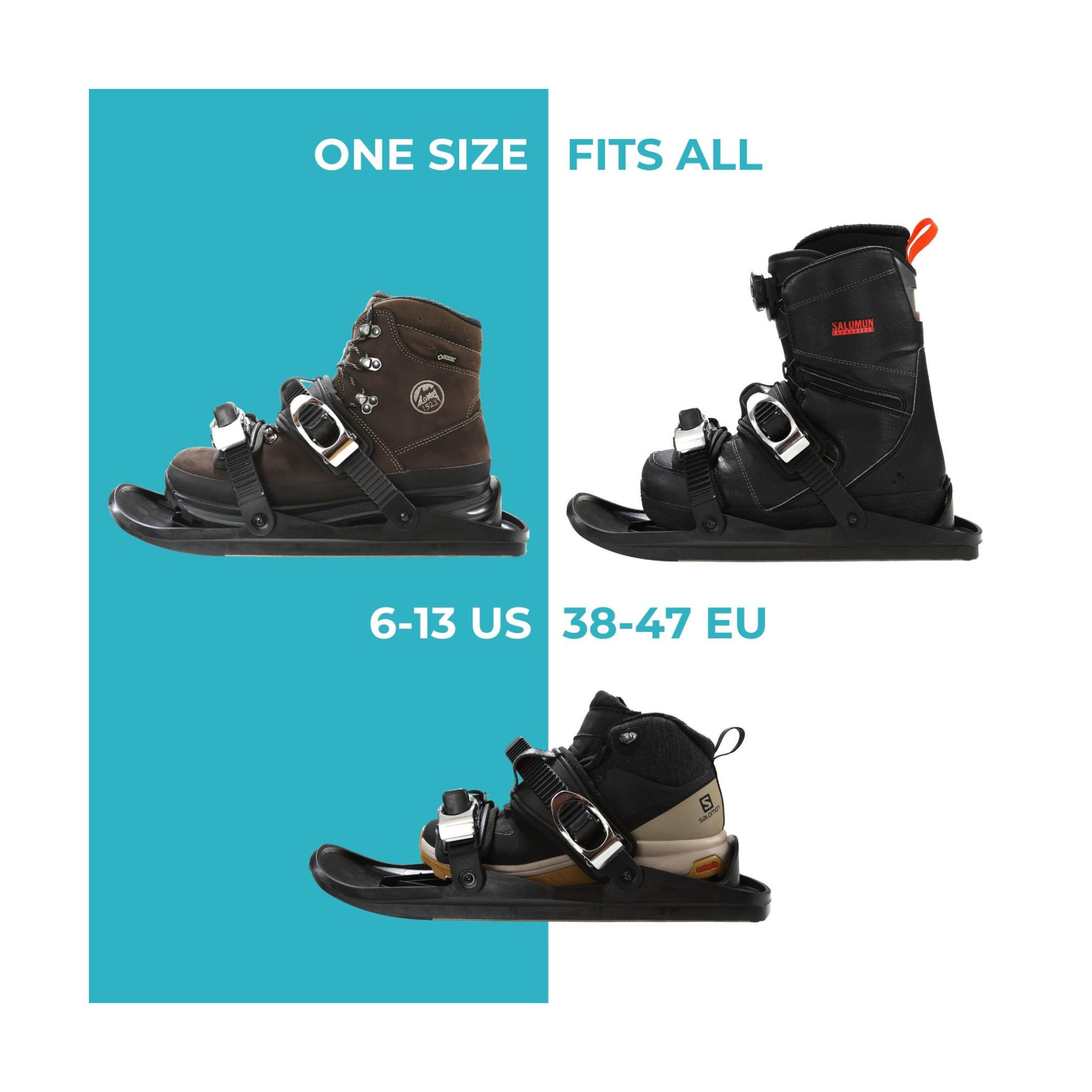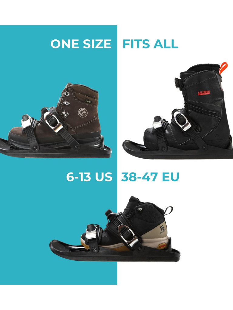 - One size fits all. We recommend Snowfeet for shoes of size: 6-13 US / 38-47 EU.