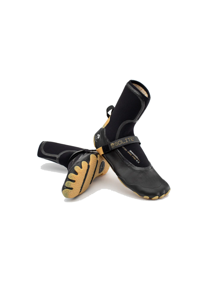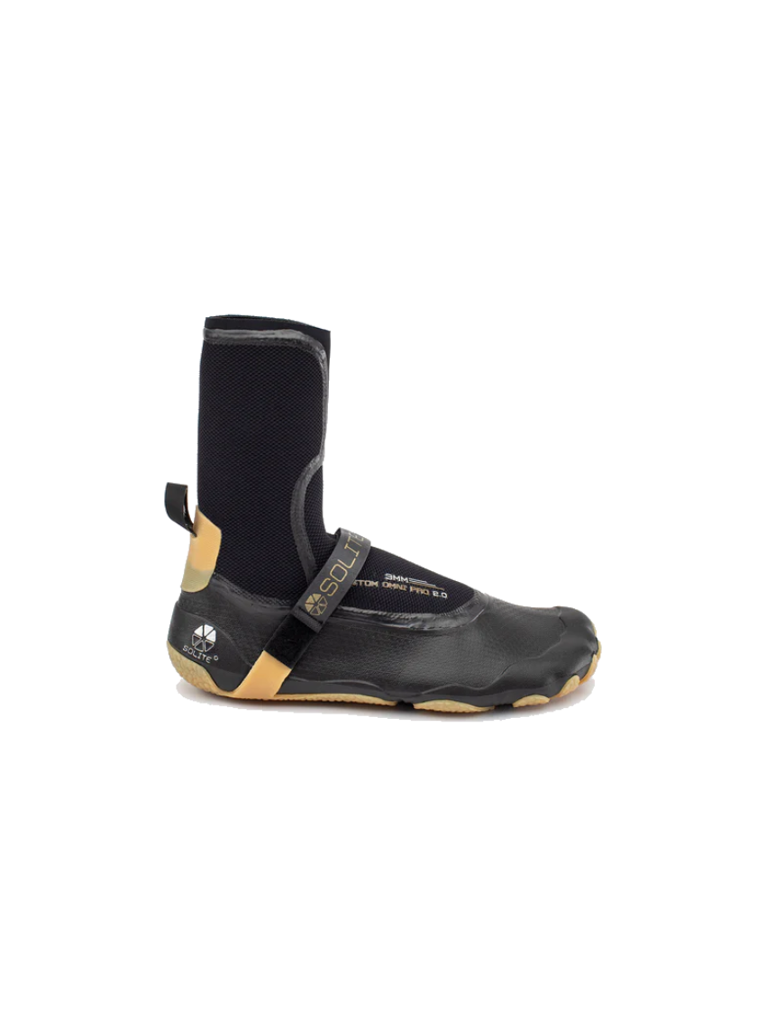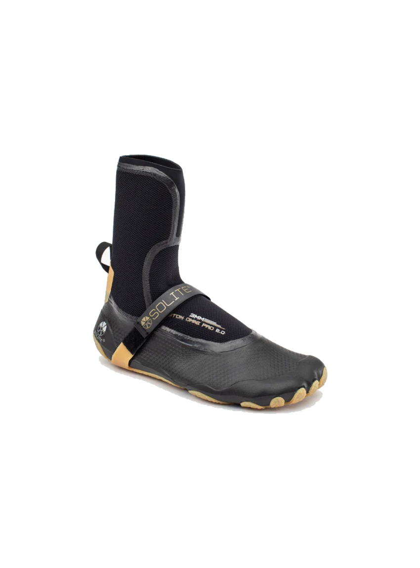 Like all of our new 2.0 Series boots, the 3mm Custom Omni Pro 2.0 features a one-piece, 3D molded natural rubber sole. The Omni outsole is 3mm thick (versus 1mm on the Custom and Custom Pro boots). The extra sole thickness emphasizes comfort and protection for walking to/from/in the water. Our sticky/flexible gum-rubber compound offers maximum traction on wet, uneven surfaces and natural flexibility for barefoot-feeling while walking. The sole wraps up the toes and heel for increased durability and protection against rocks, urchins, and reef.
