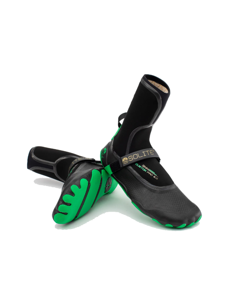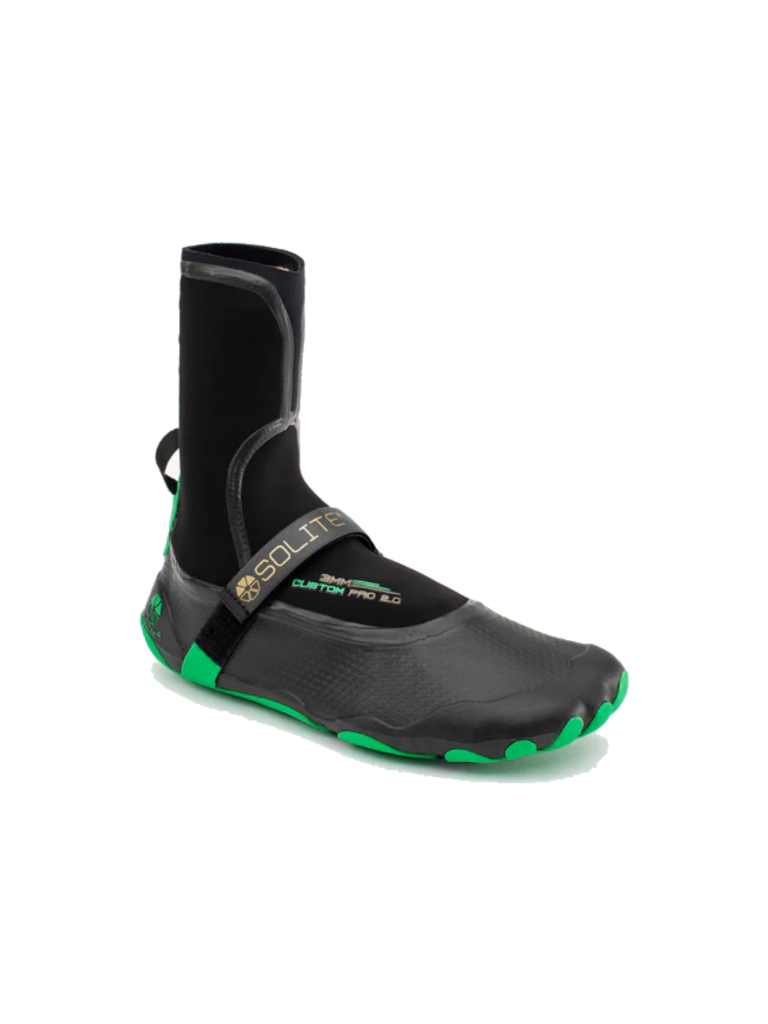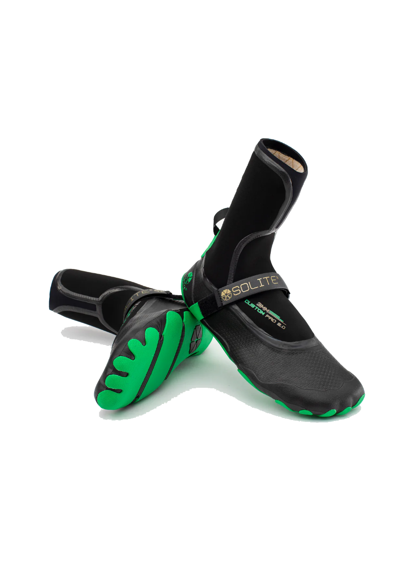 We've changed the bootie-game again with our Solite 2.0 technology. The 3mm Custom Pro 2.0 integrates our new 3-Point Strap with the 2.0 Sole for precision fit and instant response. We've also upped the warmth even more with our new metal-grid Thermal Rebound plush lining. Simply put, our Custom Pro 2.0 is the best watersports boot in the world. Full stop. Here's why: