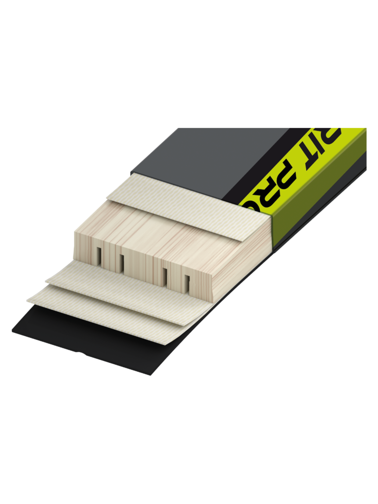 A wooden core that consists of many connected slats of selected wood to ensure the stability of the core. Cross-country skis additionally with air channels for lightening.