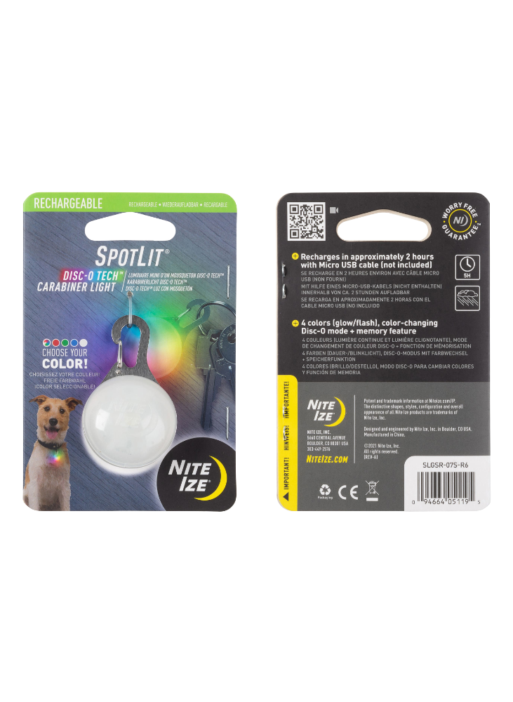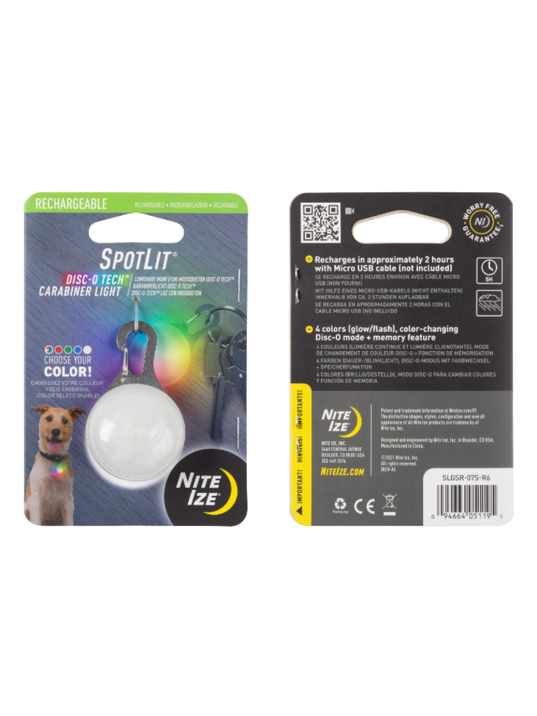 Create an accountWhenever you need a little light, the rechargeable SpotLit is there. Set in a secure stainless steel carabiner clip with a durable, weather-resistant body, all it takes is a little push to bring it to life. Featuring an innovative Disc-O Tech LED module, you can choose from four selectable colors of red, green, blue, or white, set any of those colors to glow or flash, or leave it in color-changing Disc-O mode to watch the colors smoothly blend from one to the next. Its built-in memory feature remembers your last color setting, automatically turning back on in that setting. Easy to clip and carry virtually anywhere, attach SpotLit to your keys, purse, zipper, backpack, and more. When the light runs low, charge it up via micro USB cable (not included) in 2 hours. Whether searching for something in your car, finding the right key for your door, walking around the campsite, or getting someone's attention from a distance, SpotLit is on your side.