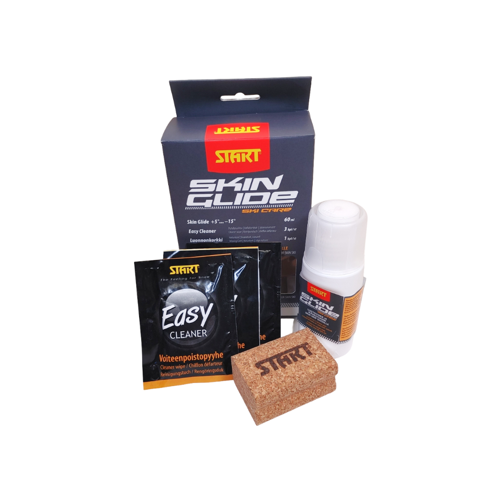 Create an accountPick up a combo pack for all your skin ski care needs! This kit includes: a bottle of Skin Glide, three Easy Cleaner Wipes, and a natural cork. Use the Easy Cleaner wipes to clean dirt and residue from your skis tip to tail and let dry, follow with a the Skin Glide from tip to tail (including the skin), let dry again and once dried follow with the natural cork.