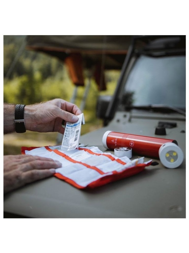 This isn't your typical first aid kit; completely waterproof, a sleek compact design, adventure-ready durability, and a curated set of outdoor specific first aid components that are perfectly organized in our custom first aid roll for easy access. You can count on your VSSL First Aid to be ready when you need it most.