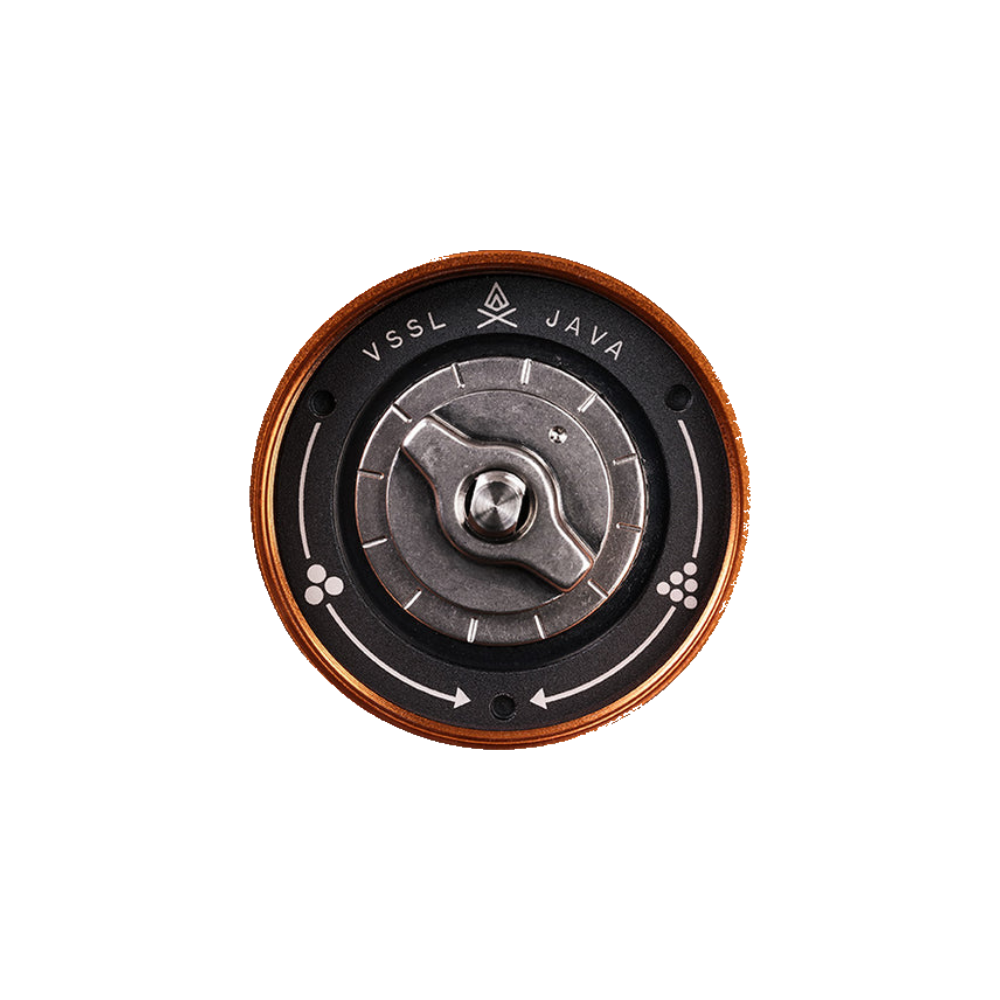 - Disassemble the grinder by removing the handle, top burr, bottom burr, and grind adjustment ring, if applicable.