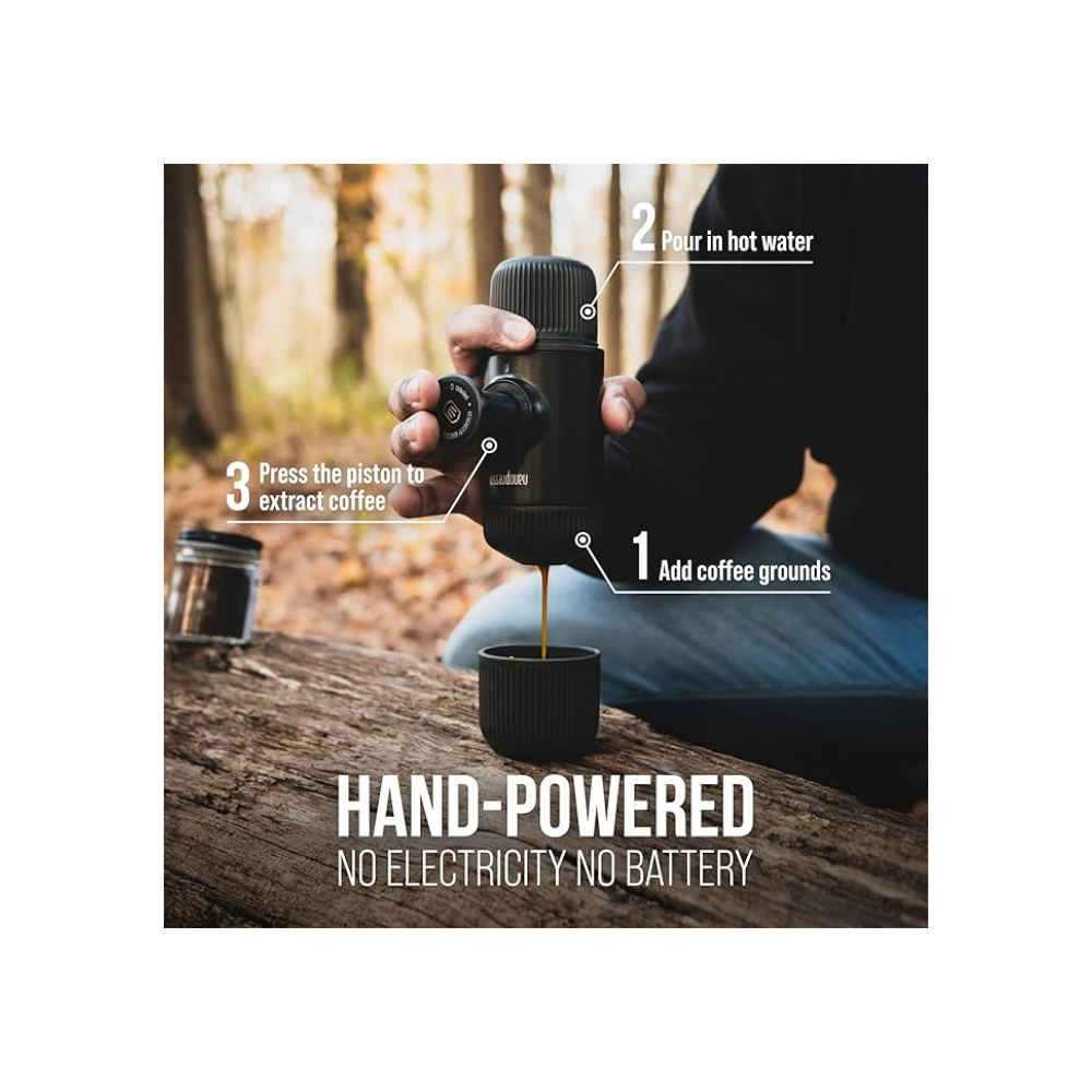 - Compact and Versatile: Whether you’re at home, at work, or on an adventure, the Nanopresso’s compact design makes it the perfect travel companion. It fits easily into your bag, so you can enjoy a perfect espresso wherever you go.