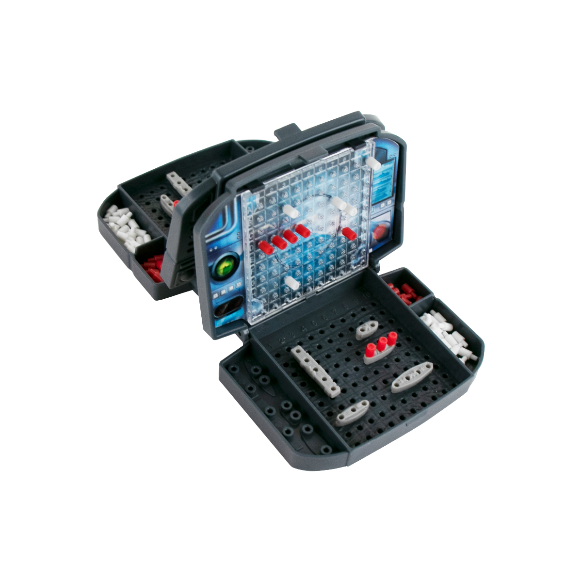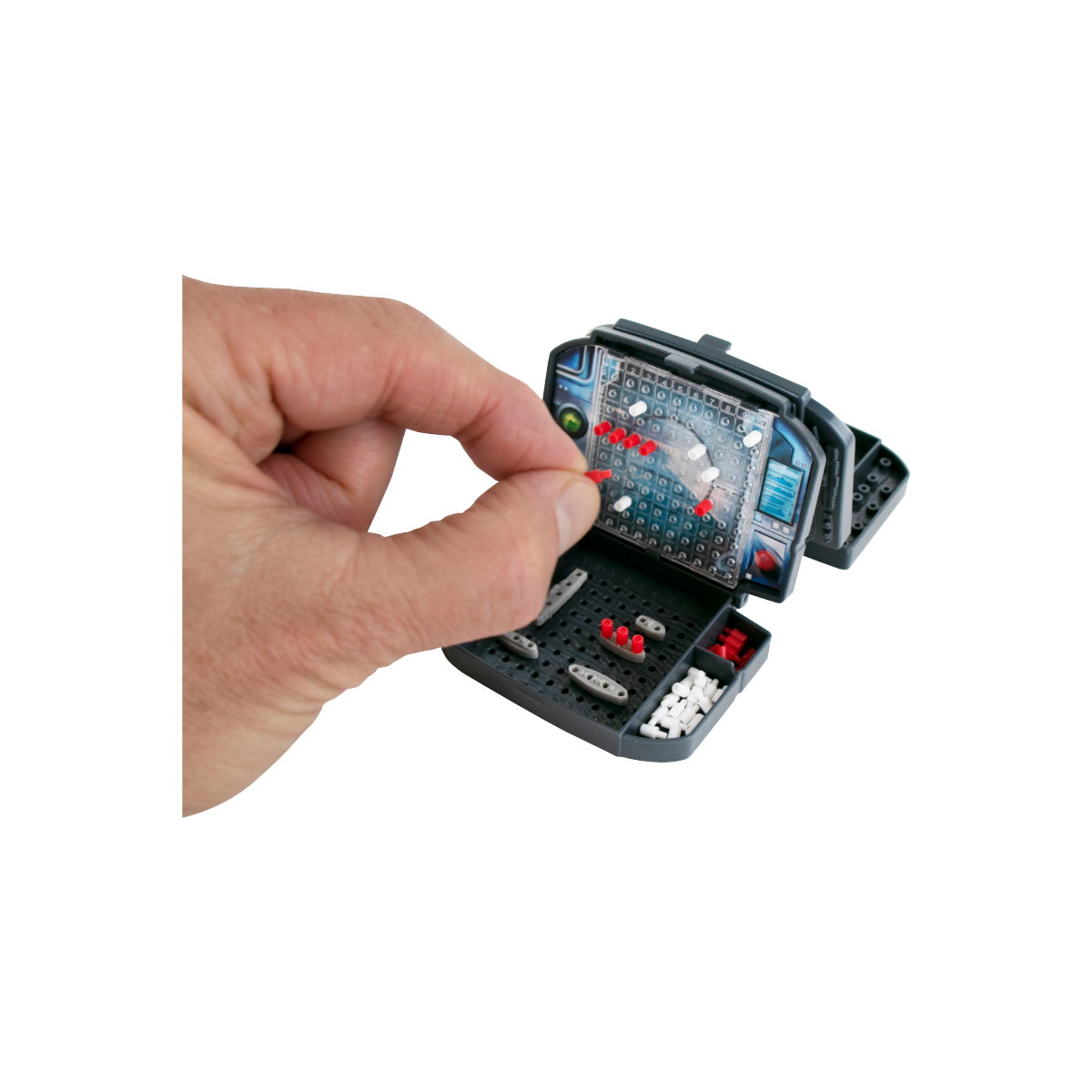 - Includes gameboard (2 console pieces measuring 2.75" wide by 2" deep), 10 tiny ships and 73 tiny red pegs, and 168 tiny white pegs!