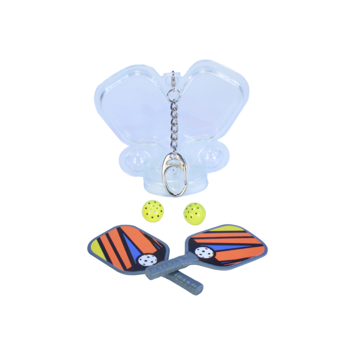 - Comes complete with 2 paddles, 2 balls and 1 keychain.