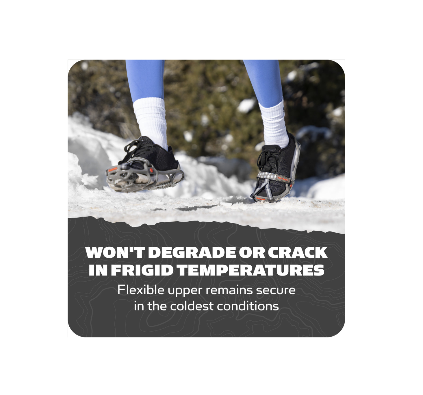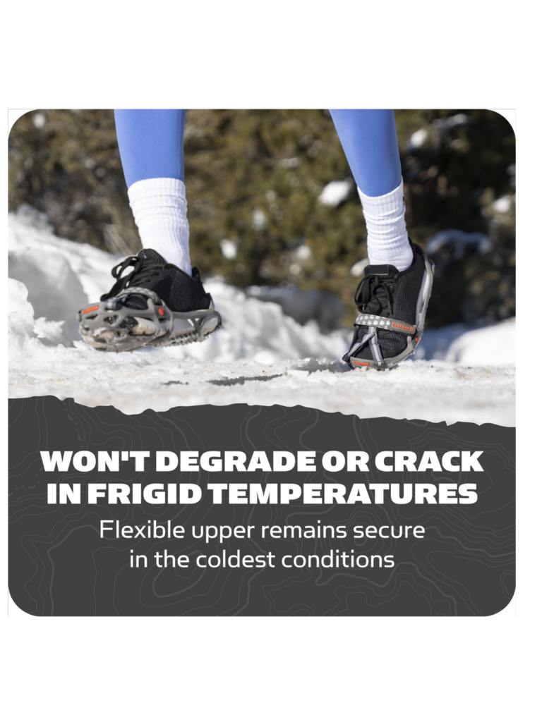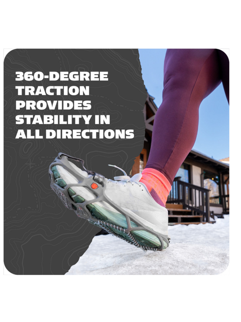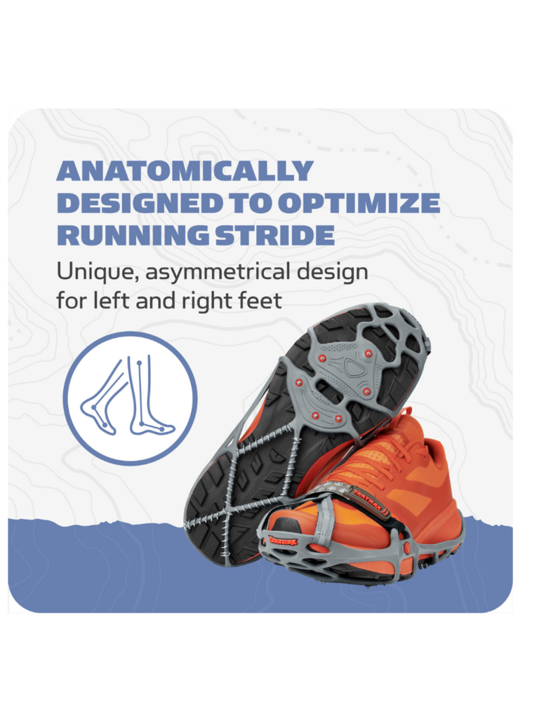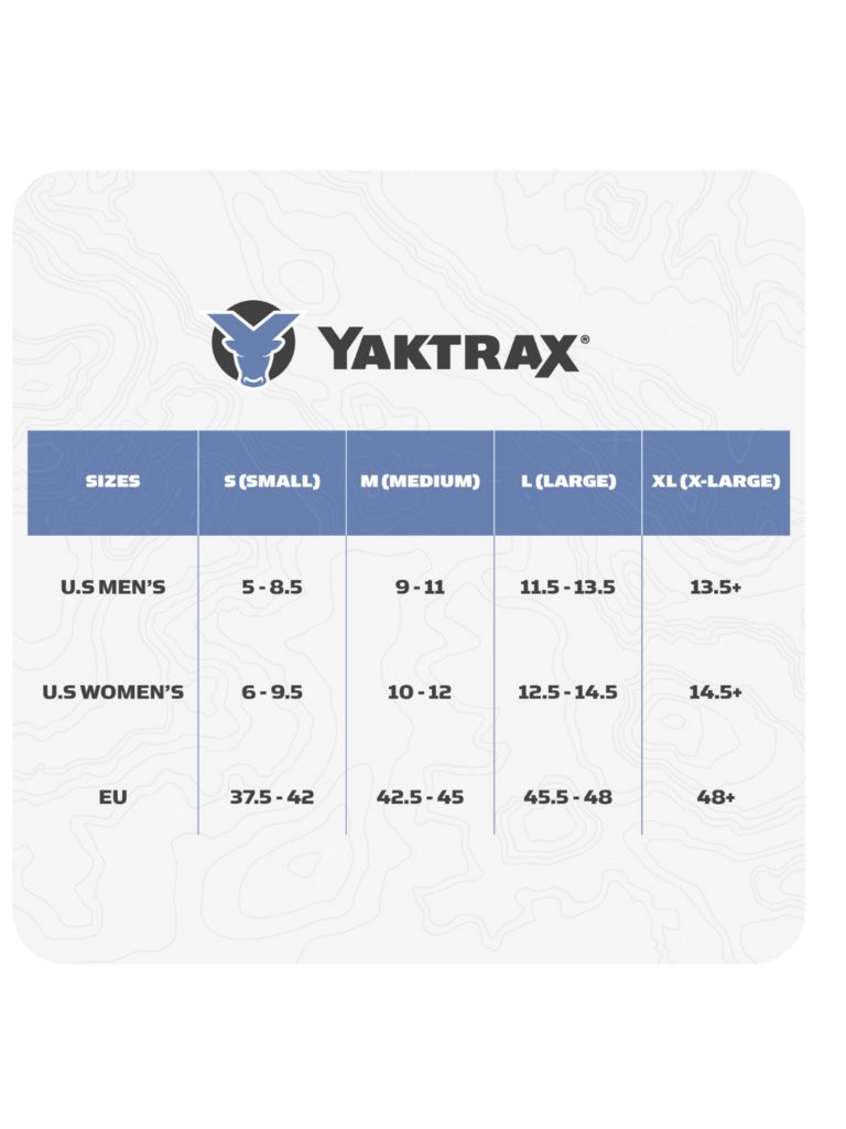 Run naturally on packed snow and ice with the Yaktrax Run s combination of 3mm carbide steel spikes for reliable toe-off and 1.4mm steel coils for flexible landing on the heel, providing 360 of unbeatable traction. Continue your training during the winter as you would in any other season. The Yaktrax Run can be worn in temperatures as low as -41 Fahrenheit. For oversized shoes or boots, Yaktrax recommends purchasing one size larger than your normal shoe size.