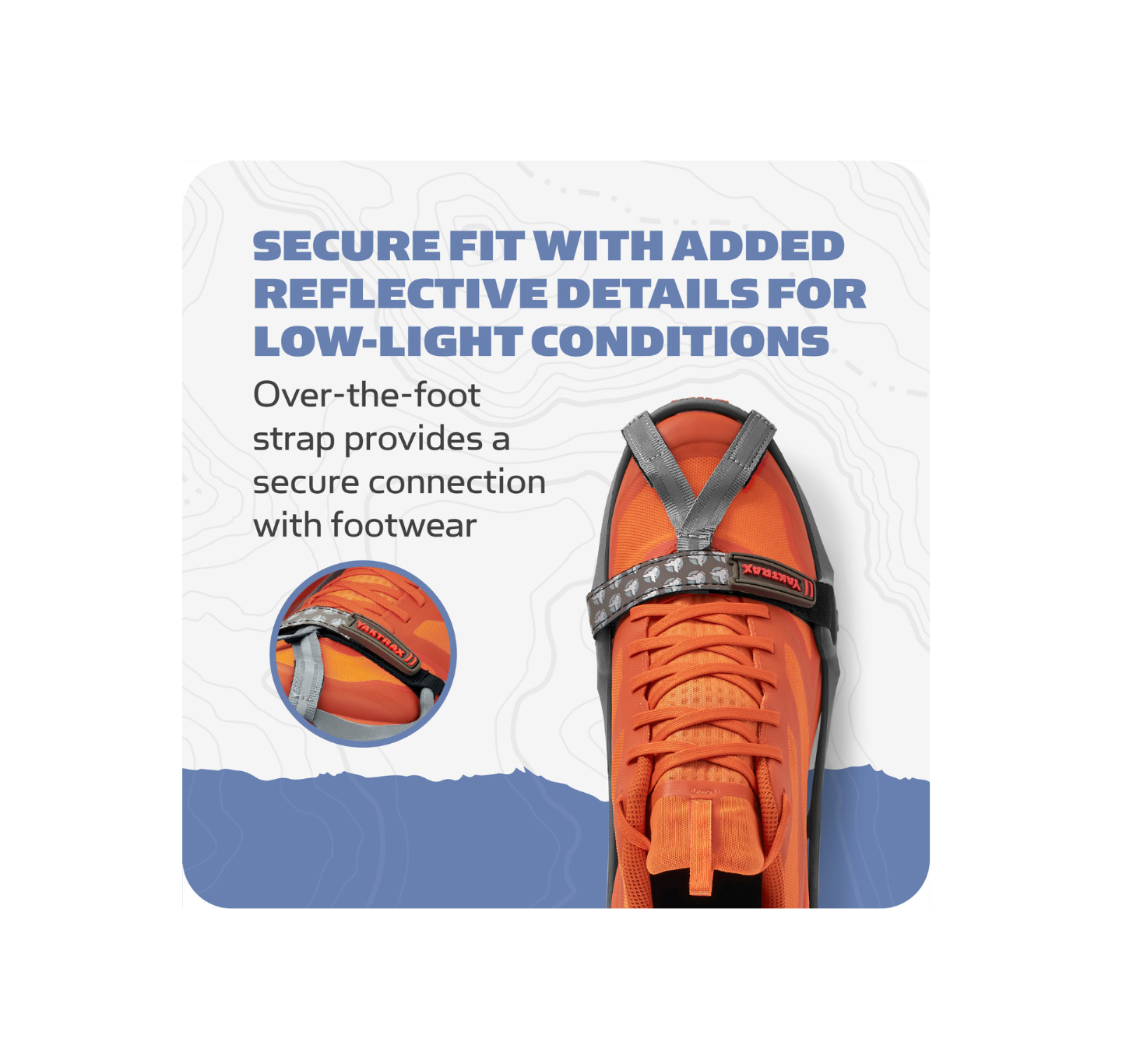 - Reflective heel tab and performance strap offers safety